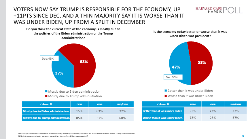 Matt Stoller quipped that Trump’s racism always seemed to go down smoother when inflation was low and Bitcoin was high. It’s funny, but it’s not really a joke. If the country were being governed well, it would be easier for some to stomach brazen displays of bigotry from the president of the United States. Vice doesn’t cause as much indigestion when prosperity has people fat and happy. But Americans feel worse about their prospects than they have in a long time, and it has become impossible to ignore. A Harvard CAPS/Harris poll published Feb. 2 found that 51 percent of those surveyed said Trump was doing a worse job than Joe Biden. More than that, 53 percent said the economy is worse now than when Joe was in office. Only 39 percent approve of the way the Trump administration is handling inflation.